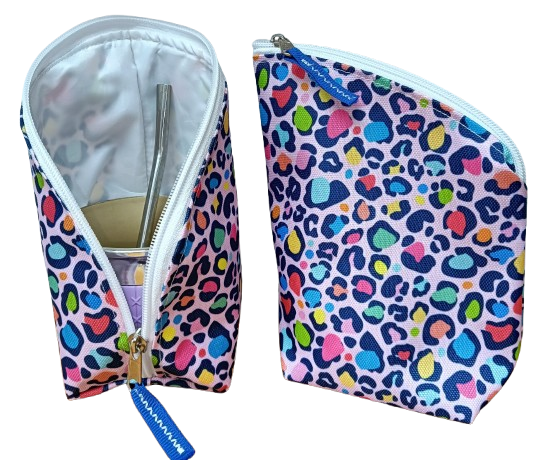 Yerbera y Porta mate en cordura estampada impermeable forrada en tela silver.
