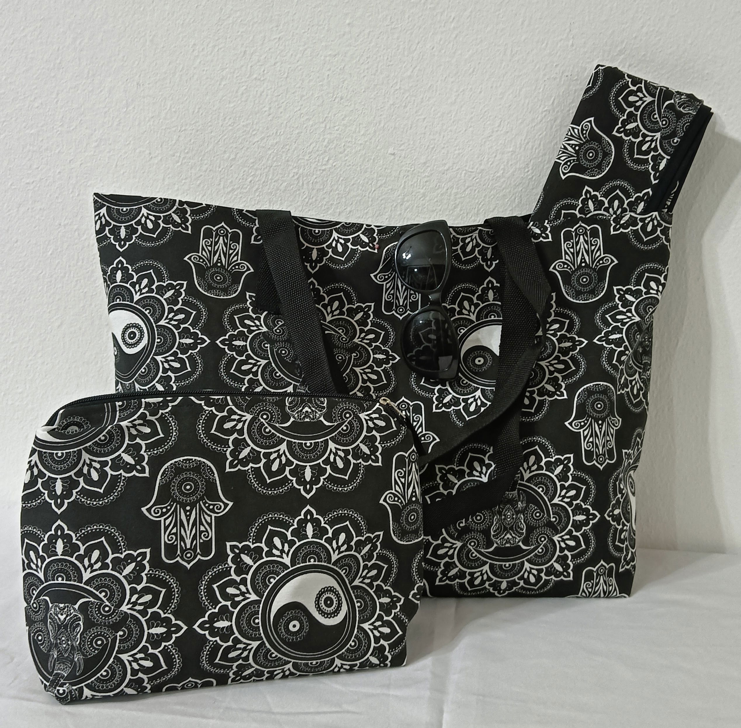 Bolso Playero Grande + Lona+ neceser con cierre + lona + organizador de reposera